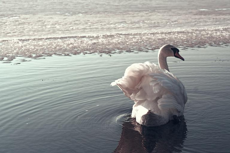 Keywords: swan lake swans bird nature water landscape wild birds water bird pen animal view ice ice sheet winter floating
