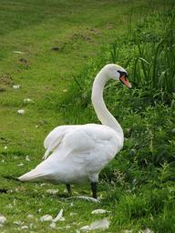 Keywords: swan mute swan bird white head waterfowl beak wings animal nature grass swans