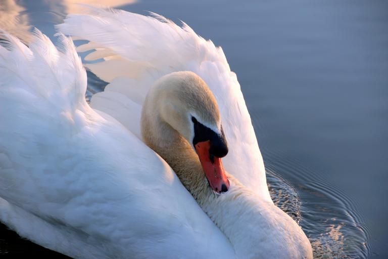 Keywords: swan mute swan cygnus olor head close water bird white elegant swim water pride lake waters wildlife photography beauty nature abendstimmung sunset