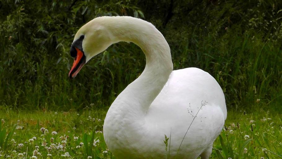Keywords: swan posing mute swan bird nature white river swans water bird elegant beautiful animal meadow green grass bill wildlife photography spring dress poultry wing feather