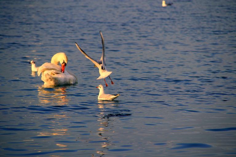 Keywords: swan seagull lake water bird nature white wildlife winter sunny flying
