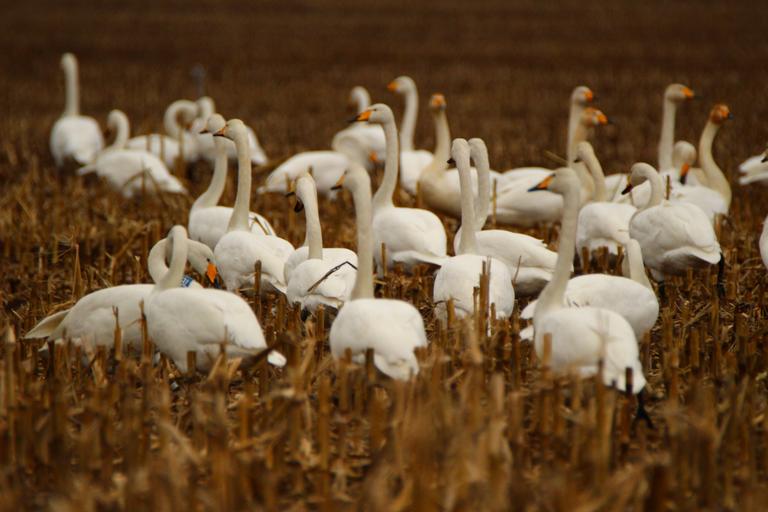 Keywords: swan whooper swan bird migratory bird swans birds field arable flock of birds swarm water bird migratory birds