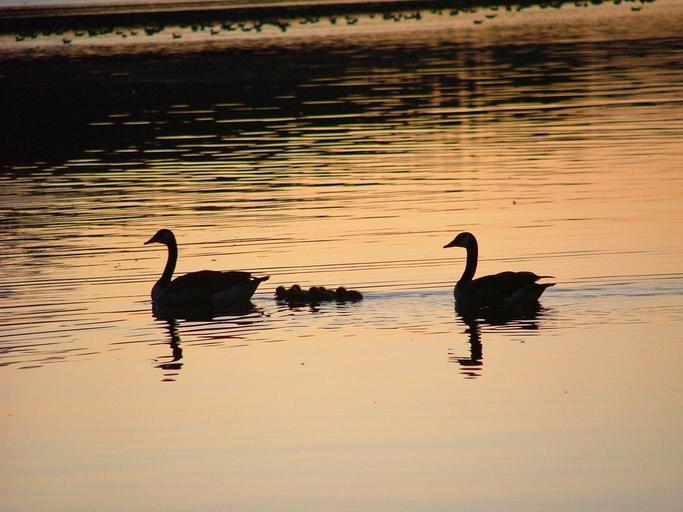 Keywords: swans dusk silhouette swan bird night reflection swimming wild close