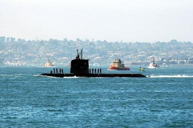 Keywords: Swedish attack submarine HMS Gotland.jpg The Swedish diesel-powered attack submarine HMS Gotland transits through San Diego Harbor during the Sea and Air Parade held as part of Fleet Week San Diego 2005 Fleet Week San Diego is a three-week tribute to Southern California-area military members and their families 051001-N-0050T-017 Navy http //www navy mil/view_image asp id 28701 Mate 2nd Class Patricia R Totemeier U S Navy Photo 2005-10-01 PD-USGov-Military-Navy LicenseReview http //www navy mil/view_image asp id 28701 Sanandros 2014-08-10 Submarines in motion HMS Gotland submarine 1995 C-Tractor 8 ship 1994 Fleet Week San Diego Tugboats with submarines Taken with Nikon D70 |