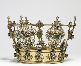Keywords: Swedish - Swedish Wedding Crown - Walters 572047 - View B.jpg Although crowns are customarily associated with royalty wedding crowns in Scandinavia were worn by brides of all social strata They were owned by the bride's parish and loaned for the occasaion Wedding crowns were richly decorated with emblems of conjugal love this example includes carnations associated with enduring marriage because their fragrance outlasts their blossoms dangling linden leaves which represent fertility in Nordic literature and angels Christian figures that allude to the eternal and spiritual qualities of marriage The crown itself resembles that worn by Mary Queen of Heaven early Other date century 18 silver gilt with paste jewels cm 14 9 accession number 57 2047 17336 Ruth Blumka New York November 1978 mode of acquisition unknown Walters Art Museum 1978 by purchase Museum purchase 1978 Jewelry - Ancient to Modern The Walters Art Gallery Baltimore 1979-1980 Objects of Adornment Five Thousand Years of Jewelry from the Walters Art Gallery Baltimore Cooper-Hewitt National Design Museum New York; Chrysler Museum of Art Norfolk; Carnegie Museum of Art Pittsburgh; San Antonio Museum of Art San Antonio; Philbrook Museum of Art Tulsa; Honolulu Academy of Arts Honolulu; New Orleans Museum of Art New Orleans; Milwaukee Art Museum Milwaukee; Minneapolis Institute of Arts Minneapolis; Toledo Museum of Art Toledo; The John and Mable Ringling Museum of Art Sarasota 1984-1987 Jewelry from the Walters Art Museum and the Zucker Family Collection The Walters Art Gallery Baltimore 1987 Bedazzled 5 000 Years of Jewelry from the Walters Art Museum Frist Center for the Visual Arts Nashville; The John and Mable Ringling Museum of Art Sarasota; The Walters Art Museum Baltimore 2006-2009 Bedazzled 5 000 Years of Jewelry El Paso Museum of Art El Paso 2010 place of origin Sweden Walters Art Museum license Jewellery in the Walters Art Museum Art of Sweden Media contributed by the Walters Art Museum needs category review Bridal crowns |