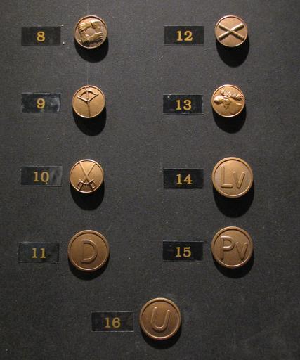 | Keywords: Swedish volunteer corps unit insignia.JPG Swedish Volunteer Corps Svenska FrivilligkÃ¥ren from Winter War 8 Svenska frivilligkÃ¥ren collar insignia<br> 9 I group I stridsgruppen <br> 10 III group III stridsgruppen <br> 11 Depot<br> 12 Headquarters<br> 13 II group II stridsgruppen <br> 14 Air defense Luftvärnskompaniet <br> 15 Anti-tank defense Pansarvärnsplutonen <br> 16 Supply units<br> Photographed in the Winter War - 70 years exhibition in the Military Museum of Finland Svenska FrivilligkÃ¥ren merkkejä 8 Svenska FrivilligkÃ¥renin kaulusmerkki<br> 9 I ryhmän merkki I stridsgruppen <br> 10 III ryhmän merkki III stridsgruppen <br> 11 Varikon merkki<br> 12 Esikunnan merkki<br> 13 II ryhmän merkki II stridsgruppen <br> 14 Ilmapuolustusosaston merkki Luftvärnskompaniet <br> 15 Panssarintorjuntaosaston merkki Pansarvärnsplutonen <br> 16 Huolto-osien merkki<br> Kuvattu Sotamuseon Talvisota “ 70 vuotta kunniamme päivistä -näyttelyssä own MKFI 2010-06-19 60 10 28 27 N 24 57 38 18 E region FI-18 ImageNote 1 440 63 342 326 2024 2429 2 Svenska frivilligkÃ¥ren collar insignia Svenska frivilligkÃ¥renin kaulusmerkki ImageNoteEnd 1 ImageNote 2 437 535 348 317 2024 2429 2 I group I stridsgruppen I ryhmä I stridsgruppen ImageNoteEnd 2 ImageNote 3 1403 67 339 323 2024 2429 2 Headquarters Esikunta ImageNoteEnd 3 ImageNote 4 1387 529 329 320 2024 2429 2 II group II stridsgruppen II ryhmä II stridsgruppen ImageNoteEnd 4 ImageNote 5 447 1023 310 326 2024 2429 2 III group III stridsgruppen III ryhmä III stridsgruppen ImageNoteEnd 5 ImageNote 6 1394 998 377 396 2024 2429 2 Air defense Luftvärnskompaniet Ilmapuolustusosasto Luftvärnskompaniet ImageNoteEnd 6 ImageNote 7 1397 1482 386 377 2024 2429 2 Anti-tank defense Pansarvärnsplutonen Panssarintorjuntaosasto Pansarvärnsplutonen ImageNoteEnd 7 ImageNote 8 418 1504 393 396 2024 2429 2 Depot fi Varikko ImageNoteEnd 8 ImageNote 9 909 1960 424 418 2024 2429 2 Supply units Huolto-osien merkki ImageNoteEnd 9 Swedish Volunteer Corps Military insignia of Sweden Collections of the Military Museum of Finland Taken with Canon PowerShot SX10 IS Files by User MKFI 2010 in Helsinki June 2010 in Finland |