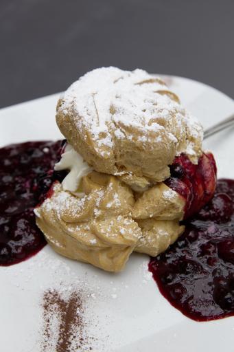 Keywords: sweet food dessert eat delicious meal calories sweetness vitamins fruit healthy hand made sweets unhealthy confectionery specialty franconian cream puff cream raspberries chocolate powder