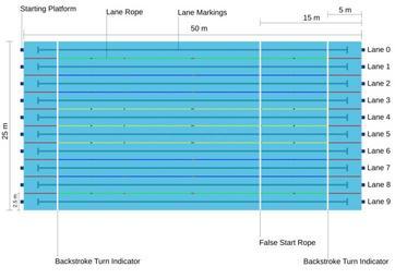 | Keywords: Swimming pool 50m 2008.svg en This is a simplified diagram of the FINA long course swimming pool standard used at the World Championships and Summer Olympics Source <blockquote>I created the image myself using Inkscape 0 45 1 as source for information I used http //www fina org/rules/english/facilities php FINA Facilities Rules and a photo of the swimming pool of the 2007 FINA World Championships from Flickr</blockquote> ru Разме ы ванны бассейна для Олимпийских Иг и Чемпионата и а Own 2008-04-08 Cmapm Cmapm Inkscape Swimming pools SVG sport field diagrams Olympic-size swimming pools |
