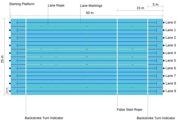 Keywords: Swimming pool 50m 2008.svg en This is a simplified diagram of the FINA long course swimming pool standard used at the World Championships and Summer Olympics Source <blockquote>I created the image myself using Inkscape 0 45 1 as source for information I used http //www fina org/rules/english/facilities php FINA Facilities Rules and a photo of the swimming pool of the 2007 FINA World Championships from Flickr</blockquote> ru Разме ы ванны бассейна для Олимпийских Иг и Чемпионата и а Own 2008-04-08 Cmapm Cmapm Inkscape Swimming pools SVG sport field diagrams Olympic-size swimming pools |