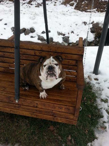 Keywords: swing winter weather fun outdoor english bulldog breed
