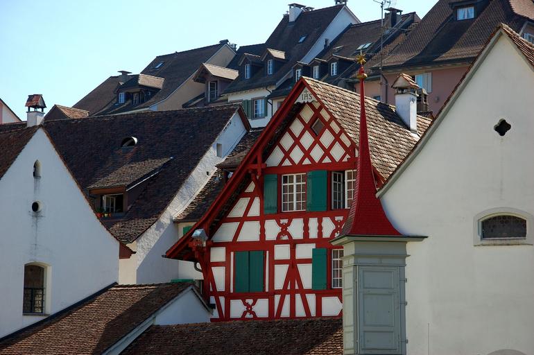 Keywords: switzerland bremgarten old town summer tourism city breaks facades shadow roofs