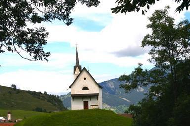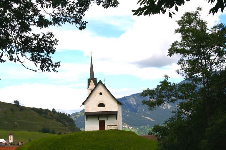 Keywords: switzerland landscape mountains sky clouds church forest trees woods nature outside summer beautiful tranquil countryside