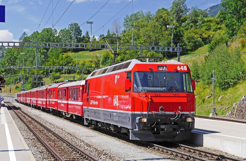 | Keywords: switzerland rhaetian railways filisur railway station hub high mountains albula line regional train ge 4 4 iii hour segments albula valley railway alpine rhb meter track ferrovia retica world heritage graubünden rhätikon trainstation platform red all year round train gleise diplomatic traffic |