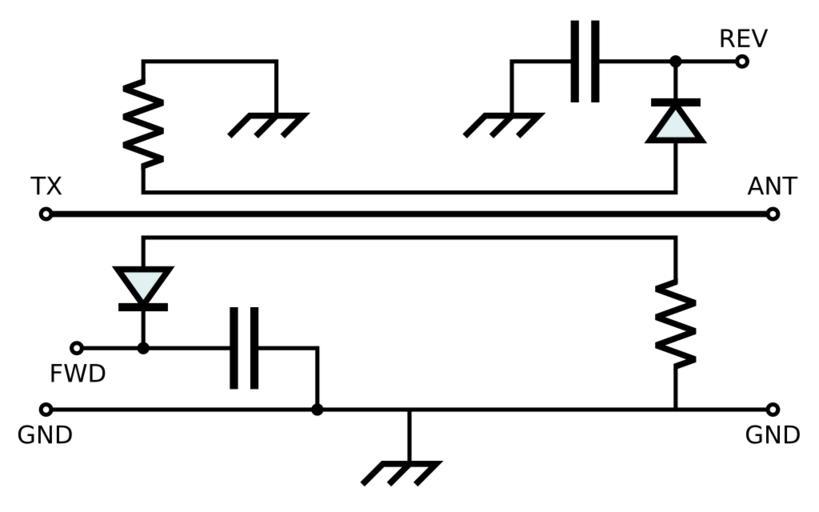 | Keywords: SWR Meter.svg SWR meter <br> TX is the input from the transmitter ANT is the antenna connection FWD is the forward wave connection REV is the reflected wave connection GND is the external ground connection own Inductiveload 2009-01-25 SWR meters |