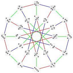 Keywords: Symmetric group 4; Cayley graph 1,5,21 (Nauru Petersen); matrices.svg Cayley graph of S<sub>4</sub> generated by blue 12 green 13 red 14 This is a Nauru graph compare http //11011110 livejournal com/124705 html The many faces of the Nauru graph by 0xDE own v fl mate2code 300px300px Nauru graph 4x4 permutation matrix |
