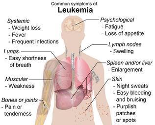 | Keywords: Symptoms of leukemia.png en Common symptoms of chronic or acute leukemia See Wikipedia Leukemia Symptoms <P>To discuss image please see Talk Human body diagrams List Common symptoms of chronic or acute leukemia may include <ref name mnet>http //www medicinenet com/leukemia/page4 htm 4whatare MedicineNet com Leukemia cont Symptoms Retrieved on November 3 2009</ref><ref name mayo>http //www mayoclinic com/health/leukemia/DS00351/DSECTION symptoms mayoclinic com Leukemia --> Symptoms By Mayo Clinic staff Retrieved on November 3 2009</ref> Lymph nodes - Swelling<ref name mayo/><ref name mnet/> Systemic - Weight loss<ref name mnet/><ref name mayo/> - Fever<ref name mnet/><ref name mayo/> - Frequent infections<ref name mnet/><ref name mayo/> Muscular - Weakness<ref name mnet/><ref name mayo/> Psychological - Fatigue<ref name mnet/><ref name mayo/> - Loss of appetite<ref name mayo/> Respiratory - Easy shortness of breath<ref name mayo/> Skin - Night sweats<ref name mnet/><ref name mayo/> - Easy bleeding and bruising<ref name mnet/><ref name mayo/> - Purplish patches or spots<ref name mnet/><ref name mayo/> Spleen or liver - Enlargement<ref name mnet/><ref name mayo/> Bones or joints - Pain or tenderness<ref name mnet/><ref name mayo/> References reflist All used images are in public domain Mikael Häggström 2009-11-03 Symptoms of leukemia ru png Symptoms of leukemia-ar png Symptoms of leukemia svg Human body diagrams Leukemia PNG male shadow diagrams |