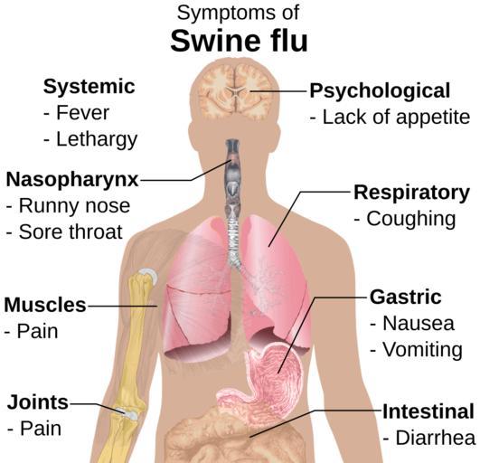 | Keywords: Symptoms of swine flu.svg  en Main symptoms of swine flu See Wikipedia Swine influenza Swine flu in Humans To discuss image please see Template talk Human body diagrams References http //www cdc gov/swineflu/key_facts htm Centers for Disease Control and Prevention > Key Facts about Swine Influenza Swine Flu Retrieved on April 27 2009 Joint pain added from general influenza http //www cdc gov/flu/symptoms htm Centers for Disease Control and Prevention > Influenza Symptoms Page last updated November 16 2007 Retrieved April 28 2009 All used images are in public domain Mikael Häggström 2009-05-03 Other formats <gallery> File Symptoms of swine flu png png </gallery> Other languages <gallery> File Symptoms of swine flu-numbered svg Language neutral </gallery><gallery> File Symptoms of swine flu-ca svg Catalan File Symptoms of swine flu-fi svg Finnish File Symptoms of swine flu-es svg Spanish File Symptoms of swine flu-mk svg Macedonian  акедонски File Symptoms of swine flu-nl svg Nederlands File Symptoms of swine flu PL svg Polish Polski File Symptoms of swine flu ru png Russian Русский File Symptoms of swine flu Chinese svg Chinese 中文 File Symptoms of swine flu hu svg </gallery> Human body diagrams SVG files on swine flu SVG diagrams of the adult male human body by Mikael Häggström |