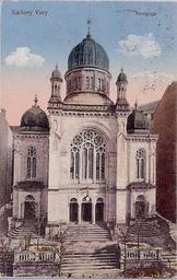 | Keywords: Syna Karlsbad.jpg >Synagogue of Karlsbad Karlovy Vary presently in the Csech Republic The synagogue has been built in 1877 and destroyed by the nazis during Kristal Nacht in 1938 Postcard 1920 author Synagogue in Karlovy Vary PD-old-70-1923 |