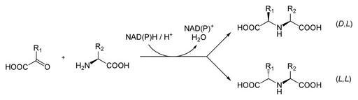 Keywords: Synthesis opines.svg en general synthesis of an opine from a 2-oxoacid and an aa de allgemeine Synthese eines Opins aus einer a-Ketosäure und einer L-AS Own Yikrazuul 2009-01-17 Opines