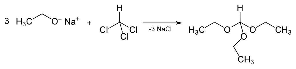 Keywords: Synthesis of triethyl orthoformate.svg triethoxymethane using sodium ethoxide and chloroform Triethoxymethan aus Natriumethanolat und Chloroform own Yikrazuul 2010-10-08 Organic syntheses