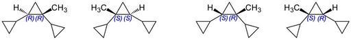 Keywords: Syntin Stereoisomers Formulae V.1.svg en Syntin_Stereoisomers de Syntin_Stereoisomere own Jü 2012-10-31 Four possible stereoisomers Cyclopropane derivatives Isomerism Cc-zero
