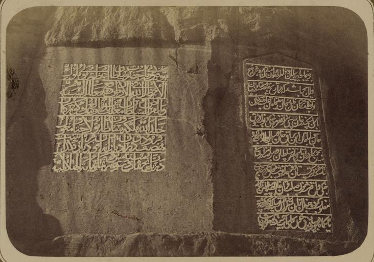 | Keywords: Syr-Darya Oblast. Inscription Carved on One of the Cliffs of Ilan Utinsk Gorge WDL3887.png Artwork ru Богаевский иколай Владими ович 1843 1912 гг fr Bogaevskii Nikolaï V 1843-1912 en Bogaevskii Nikolai V 1843-1912 zh 亚历山大·L· ,1840-1888 年 pt Bogaevskii Nikolai V 1843-1912 ar بوغافسكي، نيكولاي ف ، 1843-1912 es Bogaevskii Nikolai V 1843-1912 ru Сы да ьинская область адпись высеченная на одной из скал Илан-Утинского ущелья fr Oblast de Syr-Daria Inscription sculptée sur l une des falaises de la gorge d Ilan Utinsk en Syr-Darya Oblast Inscription Carved on One of the Cliffs of Ilan Utinsk Gorge zh 锡尔河 区 兰尤丁 克峡谷 座峭壁上雕刻的铭文 pt Oblast de Sir Dária Inscrição esculpida em um dos penhascos da Garganta de Ilan Utinsk ar منطقة سير-داريا نقش محفور على أحد أجراف وادي إيلان يوتنسك ru Эта фотог афия панелей с высеченными на них надписями в Джалан-Утинском или Илан-Утинском ущелье асположенном на те ито ии сов еменного Узбекистана соде жится в а хеологической части <em> Ту кестанского альбома </em> Шеститомное фотог афическое исследование было подготовлено и издано в 1871 1872 гг под пат онажем гене ала Константина П фон Кауфмана пе вого гене ал-губе нато а 1867 1882 гг Ту кестана как называли в то в емя те ито ию Цент альной Азии п инадлежавшую Российской импе ии ебольшая ека Джалан-Уты п отекает к юго-западу от Ташкента в нап авлении го ода Джизак кото ый асположен в севе ной части Сама кандской области входившей в состав Российской импе ии Че ез этот го од основанный еще в X веке п оходил Великий шелковый путь Осенью 1866 г Джизак п ев атился в ст атегически важную точку для оссийских войск воевавших п отив эми а Буха ы В ходе п едва ительных манев ов одно из войсковых соединений асположилось лаге ем на лугу возле входа в Джалан-Утинское ущелье В октяб е 1866 г оссийские войска взяли Джизак Джалан-Утинское ущелье п едставляет собой ха акте ную особенность данного егиона пустынный ландшафт кото ого из езан глубокими услами д евних ек Эти надписи высеченные на одном из скалистых склонов ущелья демонст и уют высокое масте ство в пе сидско-а абском письме слева сулюс сп ава насх Подобные надписи восхваляют выдающиеся дела благочестивых людей <br>А хеологические объекты; Скалы; адписи; Фотог афические исследования fr Cette photographie des panneaux d inscription sculptés sur la gorge de Djalan-Uty ou Ilan Utinsk dans l actuel Ouzbékistan est extraite de l ouvrage archéologique <em>Album du Turkestan</em> Cet inventaire photographique en six volumes fut réalisé entre 1871 et 1872 sous le patronage du général Konstantin P von Kaufman premier gouverneur général 1867-1882 du Turkestan nom donné aux territoires d'Asie centrale de l'Empire russe Le petit fleuve de Djalan Uty coule dans la région située au sud-ouest de Tachkent vers la ville de Djizak sise au nord de l oblast de Samarcande sous l Empire russe Établie dès le X<sup>e</sup> siècle la ville de Djizak était située sur la légendaire route de la soie l automne 1866 Djizak a occupé une place stratégique dans la campagne russe contre l émir de Boukhara Lors des manœuvres initiales un corps de troupes campa dans une prairie à proximité de l ouverture de la gorge de Djalan-Uty En octobre 1866 les forces russes prirent la ville de Djizak La gorge de Djalan-Uty est une particularité d une région où d anciens fleuves ont creusé des chenaux profonds à travers le paysage aride Ces panneaux d inscription qui sont sculptés sur une falaise de la gorge sont calligraphiés en une écriture cursive perso-arabe d une qualité artistique considérable thoulouth à gauche et naskhi à droite Ces inscriptions proclament les actes remarquables de personnalités saintes <br>Sites archéologiques; Falaises; Inscriptions; Inventaires photographiques en This photograph of inscription panels carved at the Djalan-Uty or Ilan Utinsk Gorge in present-day Uzbekistan is from the archeological part of <em>Turkestan Album</em> The six-volume photographic survey was produced in 1871 72 under the patronage of General Konstantin P von Kaufman the first governor-general 1867 82 of Turkestan as the Russian Empire s Central Asian territories were called The small Djalan-UtyRiver flows in the region southwest of Tashkent in the direction of the town of Jizzakh located in the northern part of Imperial Russia s Samarkand Oblast Settled as early as the 10th century Jizzakh was on the fabled Silk Road In the fall of 1866 Jizzakh occupied a strategic place in the Russian campaign against the Emir of Bukhara During initial maneuvers a body of troops encamped on a meadow near the opening to the Djalan-Uty G