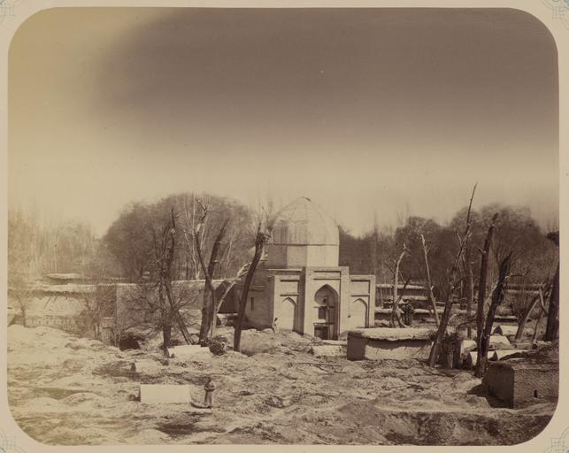 Keywords: Syr-Darya Oblast. Mausoleum of Saint Sheikhantaur in Tashkent WDL3885.png Artwork ru Богаевский иколай Владими ович 1843 1912 гг fr Bogaevskii Nikolaï V 1843-1912 en Bogaevskii Nikolai V 1843-1912 zh 亚历山大·L· ,1840-1888 年 pt Bogaevskii Nikolai V 1843-1912 ar بوغافسكي، نيكولاي ف ، 1843-1912 es Bogaevskii Nikolai V 1843-1912 ru Сы да ьинская область авзолей святого Шейхантау а в Ташкенте fr Oblast de Syr-Daria Mausolée du vénérable Sheikhantaur à Tachkent en Syr-Darya Oblast Mausoleum of Saint Sheikhantaur in Tashkent zh 锡尔河 区 位于塔 干的 谢罕塔尔陵墓 pt Oblast de Sir Dária Mausoléu do santo Sheikhantaur em Tashkent ar منطقة سير-داريا ضريح الولي شيخ عنتور في طشقند ru Эта фотог афия мавзолея Шейхантау а в Ташкенте сов еменный Узбекистан соде жится в а хеологической части <em> Ту кестанского альбома </em> Шеститомное фотог афическое исследование было подготовлено и издано в 1871 1872 гг под пат онажем гене ала Константина П фон Кауфмана пе вого гене ал-губе нато а 1867 1882 гг Ту кестана как называли в то в емя те ито ию Цент альной Азии п инадлежавшую Российской импе ии Шейхантау общеп инятая к аткая фо ма имени шейха Ховенди ат-Таху а одился в конце XIII в в го ной де евне <em>Богустан</em><em> </em> или Богистон неподалеку от Ташкента Сын муд еца шейха Ома а он был последователем мистических т адиций суфизма и вошел в число наиболее почитаемых святых аве аннах а Ma Wara'un-Nahr а абское наименование Т ансоксании После сме ти Шейхантау а около 1355 1360 гг его п ах был помещен в усыпальницу внут и мавзолея <em>маза а</em> ставшую цент ом одного из к упнейших пог ебальных комплексов на те ито ии Ташкента авзолей неоднок атно пе ест аивался и ве оятно к концу XVIII в об ел вид показанный на фотог афии Вход в мавзолей об амлен ст ельчатой а кой фасад кото ой ук ашен ке амическим о наментом В цент е соо ужения асположен ба абан в фо ме многоугольника и купол п ямо под кото ым находится <em>зиа атхана</em> мемо иальный молельный зал Купол меньшего азме а едва заметный в задней части мавзолея возвышается над <em>гу хоной</em> усыпальницей еобычную деталь п едставляют собой окаменевшие стволы де евьев известных под названием <em>сау ы</em> они видны на пе еднем плане Согласно легенде п оисхождение этих де евьев восходит ко в еменам Александ а акедонского завоевавшего этот егион в конце IV в до н э <br>А хеологические объекты; Исламская а хитекту а; Фотог афические исследования; огильные памятники; Г обницы fr Cette photographie du mausolée de Sheikhantaur à Tachkent dans l actuel Ouzbékistan est extraite de l ouvrage archéologique <em>Album du Turkestan</em> Cet inventaire photographique en six volumes fut réalisé entre 1871 et 1872 sous le patronage du général Konstantin P von Kaufman premier gouverneur général 1867-1882 du Turkestan nom donné aux territoires d'Asie centrale de l'Empire russe Sheikhantaur la forme abrégée admise pour Cheikh Khovendi at-Takhura naquit vers la fin du XIII<sup>e</sup> siècle à Bogustan ou Bogiston un village situé dans les collines environnantes de Tachkent Fils du sage Cheikh Omar il adhéra à la tradition mystique du soufisme et devint l un des plus respectés saints hommes de la région du Ma Wara un-Nahr ou Mawarannahr le nom arabe de la Transoxiane Un sanctuaire fut créé après sa mort 1355-1360 env au sein du mausolée <em>mazar</em> qui devint le centre d un important ensemble de sépultures à Tachkent Le mausolée reconstruit à plusieurs reprises a pris la forme présentée ici apparemment vers la fin du XVIII<sup>e</sup> siècle L entrée principale fut encadrée par un arceau pointu dont la façade affichait des ornements en céramique Un tambour polygonal et un dôme sont situés au centre de la structure au-dessus de la <em>ziarat khana</em> salle de prière commémorative Un dôme plus bas à peine visible à l arrière s'élève au-dessus de la <em>gurkhona</em> la chambre de la tombe Le site présente une caractéristique inhabituelle qui réside dans la présence de formes pétrifiées d un arbre connu sous le nom de <em>saura</em> visible au premier plan La légende situe l origine des arbres à l époque d Alexandre le Grand qui conquit la région à la fin du IV<sup>e</sup> siècle av  J -C <br>Sites archéologiques; Architecture islamique; Inventaires photographiques; Monuments funéraires; Tombes en This photograph of the mausoleum of Sheikhantaur in Tashkent present-day Uzbekistan is from the archeological part of <em>Tur