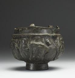 Keywords: Syrian - Censer with Scenes from the Life of Christ - Walters 542575 - View B.jpg The spiritual nature of the church interior was enhanced by the burning of incense In the medieval church as in some Christian traditions today incense blessed by the priest was sprinkled on hot coals placed inside a censer which was then swung back and forth around the priest sacred objects of the sanctuary and the congregation during religious ceremonies The smoke of the incense wafting through the air was believed to facilitate the ascent of people's prayers to heaven Moreover the aromatic scent was thought to honor God and the saints and attention was paid to the composition of the incense because each element frankincense myrrh aloeswood was held to possess purifying powers This Byzantine censer carries relief images of the Annunciation Nativity Crucifixion and the Women at the Tomb on the sides and of the Virgin and Child enthroned on the bottom century 7 8 Early Medieval bronze cm 11 7 13 9 14 1 accession number 54 2575 27283 Mrs Carol L Brewster Owings Mills Maryland 1971 by purchase Walters Art Museum Gift of Mrs Carol L Brewster 1981 Realms of Faith Medieval and Byzantine Art from the Walters Art Museum Frist Center for the Visual Arts Nashville 2001-2002 Realms of Faith Medieval and Byzantine Art from the Walters Art Museum Frist Center for the Visual Arts Nashville 2002-2005 place of origin Syria Walters Art Museum license Medieval metalwork in the Walters Art Museum Metalwork from Syria Media contributed by the Walters Art Museum needs category review |