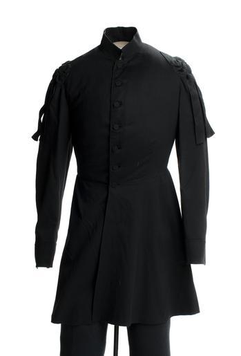| Keywords: Syrtut till sorglivré 1800-talets mitt - Livrustkammaren - 100407.tif LSH artwork sv Syrtut av svart kläde <br/>Rock med ståndkrage livsöm enkelknäppning och smalt ryggstycke <br/>Knäppning med sex klädda knappar <br/>Sprund bak med sydda veck på var sida I vecken fickor <br/>I livsömmen två knappar <br/>I kragen hyska och hake <br/>Ärmar med sydda slag knäppt med två knappar <br/>På axlarna finns svarta band påsydda lagde i form av en rosett med bandets ändar fritt nedhängande <br/>Sorglivré för kammarpage jämför med teckning nr 57 i handskriften Konung Carl XIV Johans hof- och ordens costumer från 1844 av Adolf Ulrik Schützercrantz En reform med förändring av sorgdräkten infördes i samband med Karl XIV Johans begravning 1844 original caption Syrtut till sorglivré 1800-talets mitt <br/> Nyckelord Svart Sorgedräkt Föremålsbild 1800-tal mid other date century 19 cotton Färg brunsvart d2 - dräkt - foder material bomull - broadcloth Färg svart d1 - dräkt - yttermaterial material kläde - linen Färg svart d4 - Dräkt - passpoaler band kantning uppslag material linne size mm 50 krage size mm 660 ärm size mm 920 bak size mm 895 fram LRK Dödens teater 2015-2016 Livrustkammaren place of origin original filename lm_dig16078 51402 inventory number LRK 14946 100407 CC-BY-SA Jens Mohr <gallery caption Related objects > File Syrtut till sorglivré 1800-talets mitt - Livrustkammaren - 100411 tif LRK 14945 File Syrtut till sorglivré 1800-talets mitt - Livrustkammaren - 100409 tif LRK 14945 File Knäbyxor till sorglivré - Livrustkammaren - 100414 tif LRK 14957 File Knäbyxor till sorglivré - Livrustkammaren - 100413 tif LRK 14956 File Syrtut till sorglivré 1800-talets mitt - Livrustkammaren - 100410 tif LRK 14944 File Knäbyxor till sorglivré - Livrustkammaren - 100415 tif LRK 14961 File Syrtut till sorglivré 1800-talets mitt - Livrustkammaren - 100408 tif LRK 14947 File Knäbyxor till sorglivré - Livrustkammaren - 100412 tif LRK 14958 </gallery> Mourning clothing Black 19th century Civil uniforms of Sweden Jens Mohr Media contributed by LSH dim-with multiple size templates Media contributed by LSH 2015-11 Color images from Livrustkammaren |