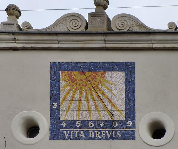 Keywords: Szczecin Zamek Ksiazat Pomorskich zegar sloneczny II.jpg pl Zegar słoneczny - Zamek Książąt Pomorskich w Szczecinie own Kapitel 2009 Szczecin Castle Sundials in Szczecin Vertical sundials Latin sundial mottos