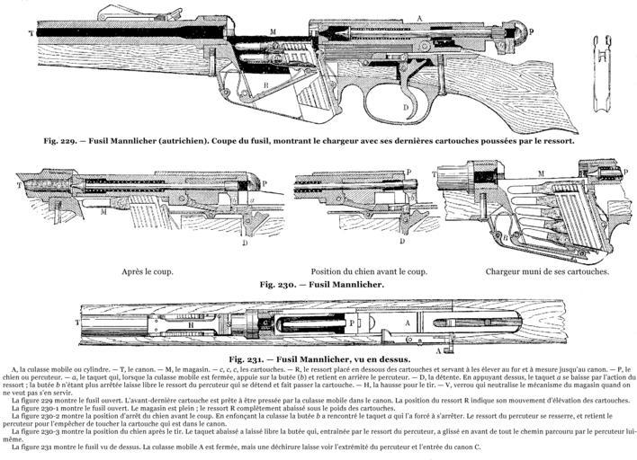 | Keywords: T6- d271 - Fig. 229, 230, 231. — Fusil Mannlicher (autrichien).png fr Fig 229 ” Fusil Mannlicher autrichien Coupe du fusil montrant le chargeur avec ses dernières cartouches poussées par le ressort - Fig 230 ” Fusil Mannlicher les trois étapes du coup - Fig 231 ” Fusil Mannlicher vu en dessus 1891 Figuier - Les Merveilles de la science 1867 - 1891 Tome 6 djvu Creator Louis Figuier other versions Custom license marker 2015 04 26 PD-old-100-1923 Uploaded with UploadWizard Les Merveilles de la science - Tome 6 Mannlicher M1888 |