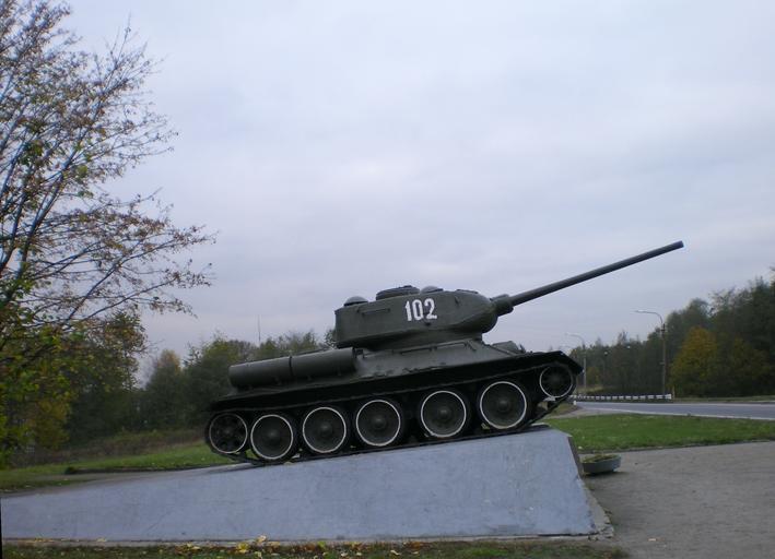 Keywords: T-34 near Kirovsk - right.JPG Памятник Т-34 на бе егу евы у Ладожского моста Вид сп ава own 2007 Анд ей Monument T-34 near Kirovsk