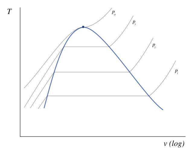 | Keywords: T-v diagram for a liquid vapor.svg en Generic representation of a temperature-volume diagram for a fluid near its liquid/vapor phase transition The blue curve represents the saturation curve black lines are constant pressure isochoric curves 2013 own Olivier Cleynen other versions cc-zero SVG physics Uploaded with UploadWizard Temperature-volume diagrams |