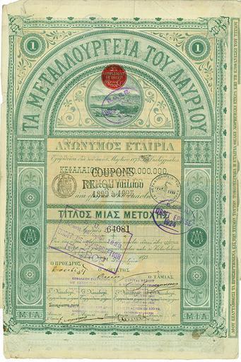 Keywords: Ta metallourgeia tou Lavriou 1873 share.jpg el ετοχή του 1873 της εταιρείας Τα εταλλουργεία του Λαυρίου en 1873 share of the company Ta metallourgeia tou Lavriou 2013-09-07 10 02 47 http //www hwph de/images/pa28/Los0111 jpg The company Ta metallourgeia tou Lavriou Custom license marker 2013 09 07 PD-old Uploaded with UploadWizard Laurium Giovanni Battista Serpieri Andreas Syggros |