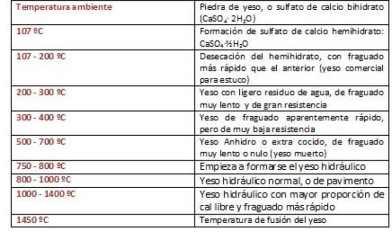 Keywords: Tabla temperaturas yesos.jpg es Tabla de yesos en función de su temperatura de deshidratación own Esi us1 Convert to wikitable Ceramics