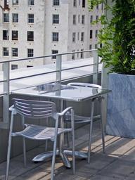 Keywords: table rooftop sitting contemporary modern terrace outdoors dinner eating chairs serving chair restaurant eat meal setting lunch serve place service arrangement