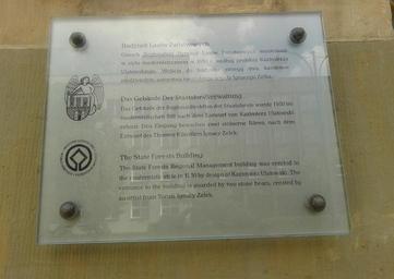 Keywords: Tablica informacyjna przy wejÅ›ciu głównym do Regionalnej Dyrekcji Lasów PaÅ„stwowych w Toruniu.jpg Regionalnej Dyrekcji Lasów PaÅ„stwowych w Toruniu - ulica Adama Mickiewicza 9 Budynek Lasów PaÅ„st «wowych Gmach Regionalnej Dyrekcji Lasów PaÅ„stwowych wzniesiony w stylu modernistycznym w 1930 roku wedÅ‚ug projektu Kazimierz Ulatowskiego WejÅ›cia do budynku strzegÄ… dwa kaminne niedźwiedzie autorstwa toruÅ„skiego artysty Ignacego Zelka 2014-07-11 16 03 20 own Grzegorznadolski cc-zero Uploaded with UploadWizard 9 Mickiewicza Street in ToruÅ„ Ignacy Zelek Kazimierz Ulatowski Plaques in ToruÅ„ |