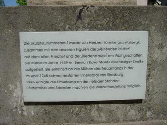 Keywords: Tafel an der "Trümmerfrau"-Skulptur in Strasburg (Uckermark).JPG en Plaque at the Trümmerfrau monument in Strasburg Uckermark de Tafel an der Skulptur Trümmerfrau in Strasburg Uckermark ru Табличка на скульпту е Trümmerfrau в го оде Шт асбу г Укке ма к own Huttenlocher 2009-05-01 Strasburg Uckermark Trümmerfrau |