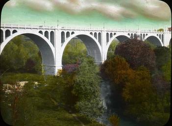 Keywords: architecture arch bridge viaduct outdoor Taft Bridge, which spans Rock Creek Park, was opened in 1907 and at the time was the largest concrete bridge in the world Taft Bridge, which spans Rock Creek Park, was opened in 1907 and at the time was the largest concrete bridge in the world |