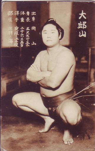 | Keywords: Taikyuzan Scan10010.JPG Bromide from Taikyuzan Takayoshi Sumo wrestler 大邱山高祥のミニブロマイド 投稿 物およびスキャン編集 2013-12-02 16 40 42 own collection unknown<br>Scanning and editing was done by Ogiyoshisan Last edited December 2 2013 Custom license marker 2013 12 03 PD-Japan-oldphoto Uploaded with UploadWizard Black and white photographic portraits of sumo wrestlers People of Okayama prefecture 1907 births 1983 deaths | ||||