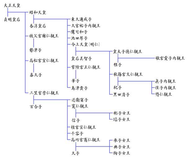 Keywords: Taisyoutennou kinjyoutennou2.png en Family trees of the Japanese imperial dynasty ja 大正天皇以降の皇室系図(皇族を離れた女 を含 ) own Myopia 2009-07-17 File Taisyoutennou kinjyoutennou png Family trees of the Japanese imperial dynasty