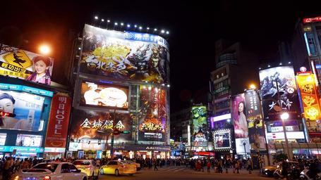 Keywords: taiwan taipei ximenting 西門町 travel tourist attraction city urban street night evening lights neon shopping building modern colorful crowd people fashion traffic