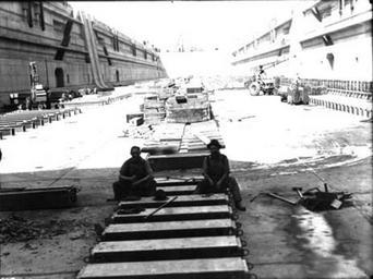 Keywords: archives state records nsw staterecordsnsw newsouthwales blackandwhite captain cook captaincook ship people workers keel smoko monochrome outdoor black and white View of the interior of the CAPTAIN COOK Graving Dock showing workers resting on keel block Dated: c.1944 Digital ID: 9856_a017_A017000064 Rights: www.records.nsw.gov.au/about-us/rights-and-permissions We'd love to hear from you if you use our photos. Many other photos in our collection are available to view and browse on our website using Photo Investigator. View of the interior of the CAPTAIN COOK Graving Dock showing workers resting on keel block Dated: c.1944 Digital ID: 9856_a017_A017000064 Rights: www.records.nsw.gov.au/about-us/rights-and-permissions We'd love to hear from you if you use our photos. Many other photos in our collection are available to view and browse on our website using Photo Investigator. |