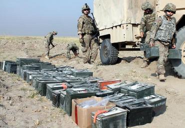| Keywords: Taking out the ‘devil’s trash heap’ 130930-D-ZQ898-992.jpg en U S Army and Air Force members unload unexploded ordnance from a Mine resistant Ambush Protected MRAP vehicle on a range a few miles from Bagram Air Field Afghanistan as others dig a trench the ordnance will be placed in before being destroyed by a controlled detonation Sept 30 Explosive ordnance technicians of Combined Joint Task Force Paladin-East ™s 663rd Ordnance Company EOD deployed from Fort Carson Colo destroyed more than 600 pounds of old recovered and captured munitions during the operation Photo by Ed Drohan CJTF Paladin Public Affairs 2013-09-30 Ed Drohan https //www dvidshub net/image/1028675 130930-D-ZQ898-992 2013-10-01 07 08 BAGRAM AIR FIELD AF PD-USGov Bagram Air Base Fort Carson Combined Joint Task Force Paladin Images from DoD uploaded by Fæ |