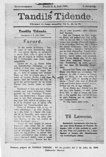 | Keywords: Tandils Tidendenro1.jpg es Tapa del nro de prueba del diario Tandils Tidense primer diario escrito en dinmarqués en Sudamérica 1880-07-08 Historia del peridodismo en Tandil José P Barrientos PD-AR-Photo Uploaded with UploadWizard Historical images of Buenos Aires Province Tandil Newspapers of Argentina 1880 newspapers |