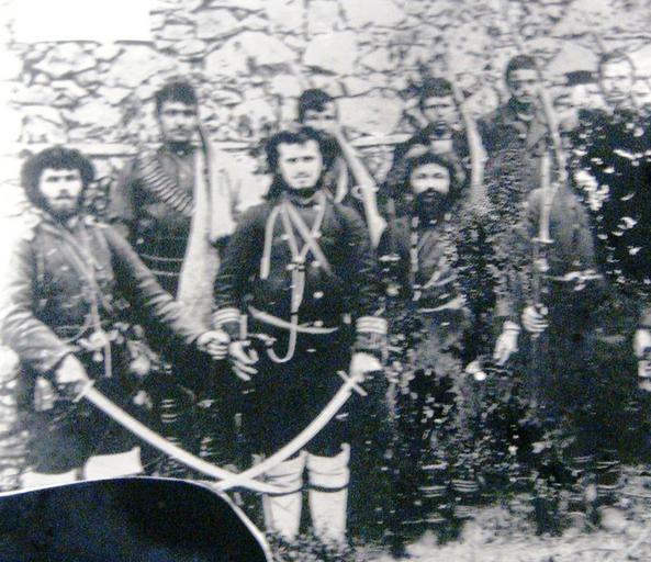 | Keywords: Tane vojvoda i Dzole vojvoda, pobratimuvanje.jpg mk Тане војводата п в од лево и Ѕоле војводата до него се поб атимат со вк стување на сабјите п ед бо ците на своите чети Баница 1906 оштетена плоча en Thane voivode first from left and Dzole voivode next to him twin-crossing the sabers before the fighters of their detachments Banica 1906 Damaged plate DARM archive 1906 The State Archives of the Republic of Macedonia DARM Bitola Department Creator Yanaki and Milton Manaki other versions Custom license marker 2016 10 04 PD-Macedonia Wikipedian in Residence at DARM Photographs by Manaki Brothers IMARO Dzole Stoychev Tane Stoychev |