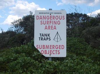 Keywords: Tank Trap warning sign at Fort Wallace.jpg Warning sign outside Fort Wallace in Stockton New South Wales Own 2007-09-14 AussieLegend -32 89081 151 79187 Stockton Beach History of Australia Stockton New South Wales Warning signs in Australia |