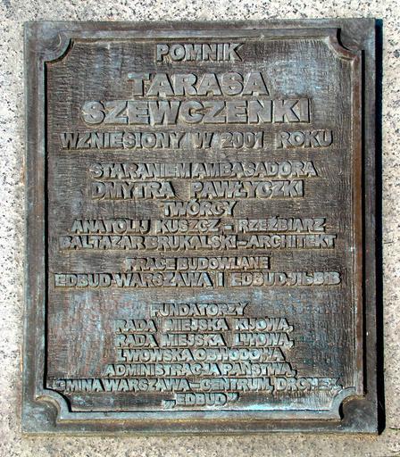 Keywords: Taras Szewczenko Warszawa 05.jpg en Shevchenko Monument Warsaw own self-made photograph Szczebrzeszynski 2009-09-16 Taras Shevchenko Monument in Warsaw