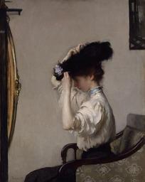 | Keywords: Tarbell, Edmund Charles - Preparing for the Matinee - Google Art Project.jpg LargeImage 1862 1862 1938 1938 Edmund Charles Male 651077 Tarbell American 1862 - 1938 /collection/indianapolis-museum-of-art/artwork/preparing-for-the-matinee-tarbell-edmund-charles/403146/ 35255 Tarbell Edmund Charles Artist /artist/edmund-charles-tarbell/4131070/ 4131070 /collection/indianapolis-museum-of-art/ Indianapolis Museum of Art 342002 http //www imamuseum org/ 12/5/2011 9 43 57 PM /collection/indianapolis-museum-of-art/artwork/preparing-for-the-matinee-tarbell-edmund-charles/403146/ 1907 1907 oil on canvas 403146 False 1907 3/24/2012 12 41 12 AM 82 201 http //www imamuseum org/mercury/load-artwork/35255 Gift of Mrs John G Rauch Sr oil paintings 1900 1910 1907 False 0 794921875 Visual Works Paintings preparing-for-the-matinee-tarbell-edmund-charles Preparing for the Matinee p oil on canvas 45 1/2 x 35 1/2 in 57 x 46 1/2 x 2 1/2 in framed special url_id SwHzG1LQWoxa5A 1938 Google Art Project works by Edmund Charles Tarbell Paintings of sitting women looking in mirrors |