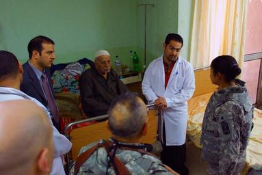 Keywords: Task Force Gunner Med, Doc's first trip to local hospital DVIDS174412.jpg en An Iraqi doctor at the Karama hospital discusses some of the challenges they face before and after surgery with Lt Col Sheila Hodgson and Col Carlos Penaloza during their visit with Task Force Gunner Med May 19 2009-05-19 Sgt 1st Class Joe Thompson https //www dvidshub net/image/174412 174412 2009-05-24 12 32 FORWARD OPERATING BASE DELTA IQ PD-USGov Forward Operating Base Delta Images from DoD uploaded by Fæ |
